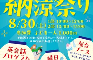 開催日 8月30日(土) 時間 一部10時〜12時、二部13時〜15時 参…